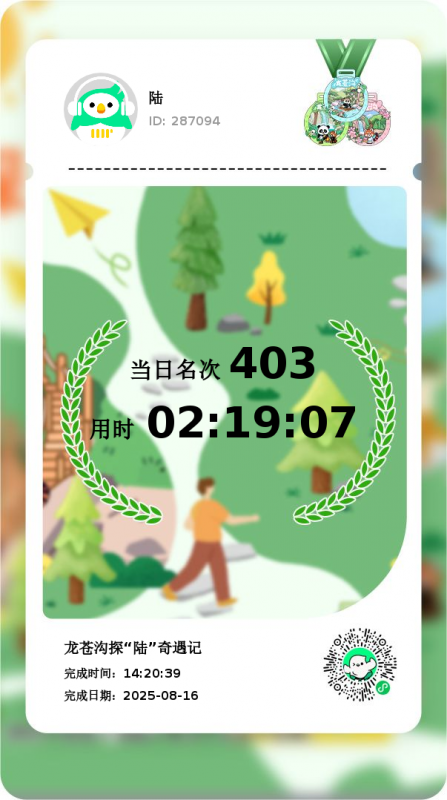 龙苍沟真是吸氧洗肺的好地方,风景美还有奖牌拿,领队晓月热情可爱,把行程安排得很好,还给我们拍了好多照片,谢谢喃!
