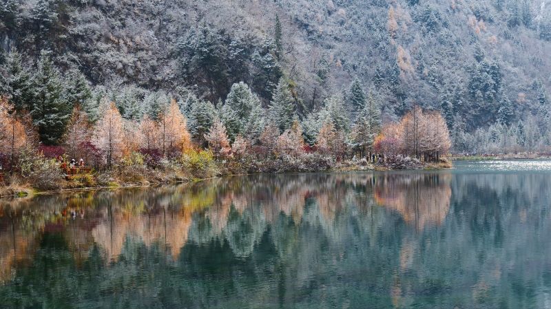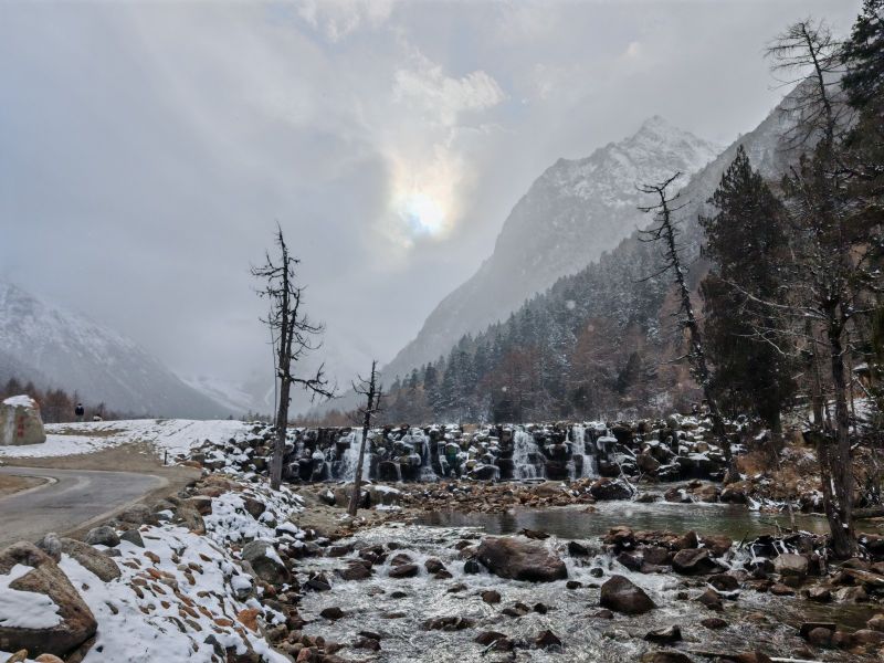 报名参加今日毕棚沟徒步一日活动,领队负责耐心,毕棚沟景区的彩林加雪景