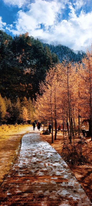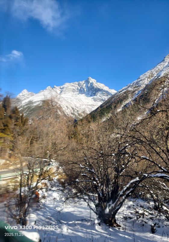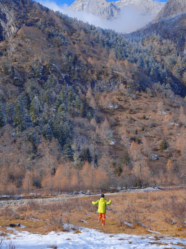 秋天真的太美了,那天去刚好有太阳,后面的雪山