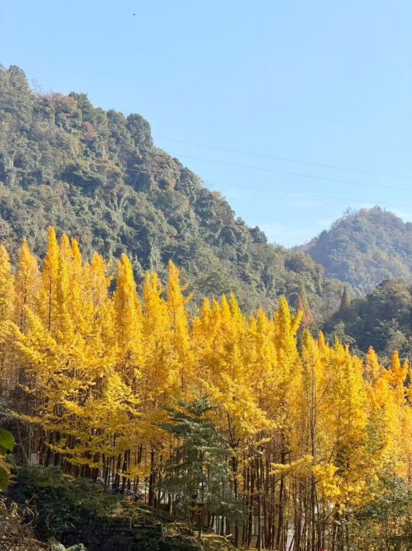 风景线。不错银杏叶掉了一些了往上只能走到天门处可打卡领奖牌。