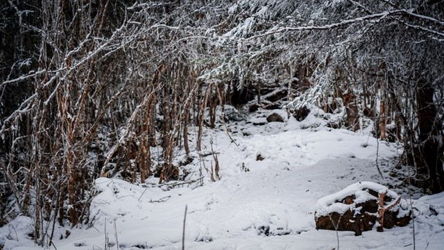 布满雪的小山沟太适合拍照了,特别推荐汉服玩家去拍照,一席红衣漫步雪林,想想都美。建议穿颜色鲜艳的衣服去,白雪就是天然的打光版,美~PS:领队让你买冰爪,一个字,买它、买它、买它!!!在滑不溜秋的雪地冰爪是救星~领队阿清温柔负责,话也不多,这个沟就是他找到的,厄尔娜沟这个名字也是他取的,找他,没错的~
