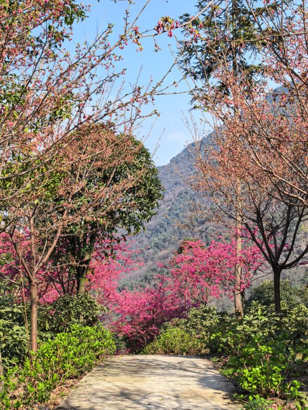 轻松愉快的春行,一路上春色满山花开遍野。上山走大路缓步爬升,下山特意走栈道或访花小径,很惬意