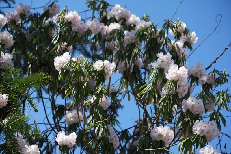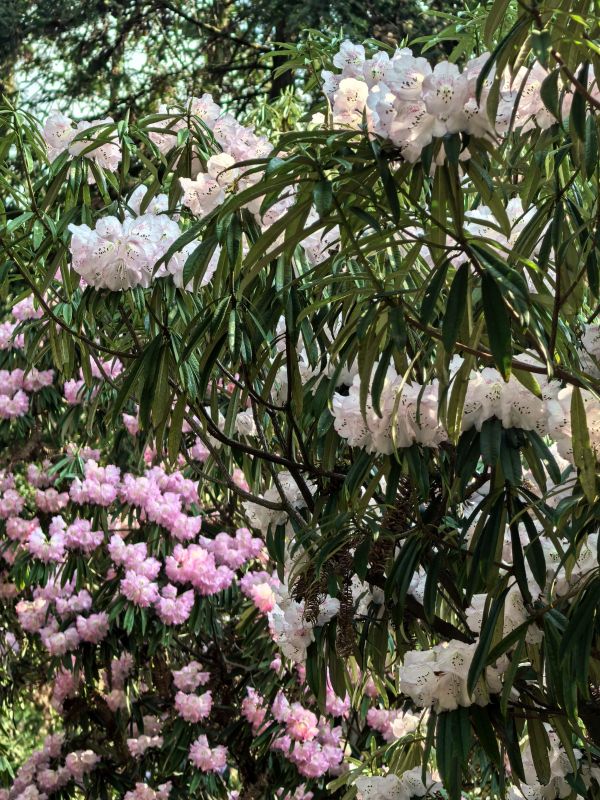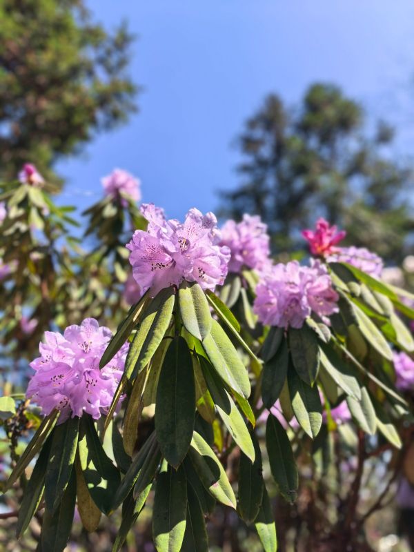 正是杜鹃盛花期,白色、浅紫、紫色和红色,阳光下娇艳欲滴,美美美。徒步线路路况不错,陡坡少