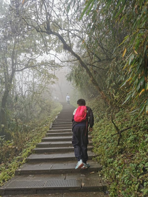 第一段路徒步上山有点累,第二段可以坐车,没领到奖牌,空气清新,山上有多冷,要穿羽绒服
