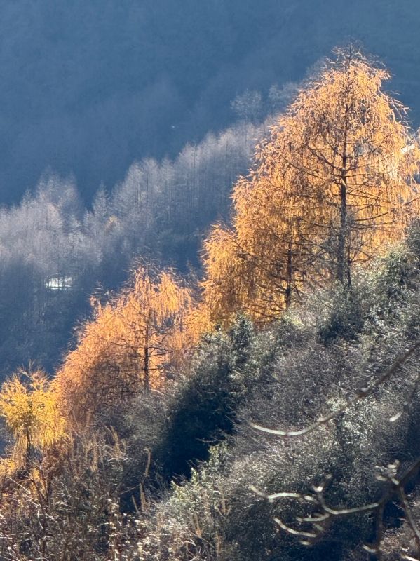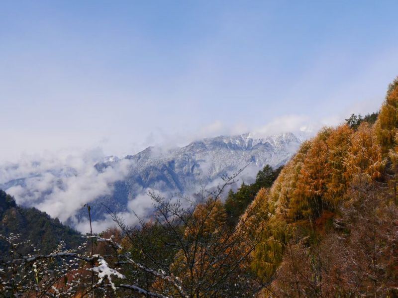 初冬,人生第一次参加LU趣户外群驴友徒步,来到了大熊猫生活的环境——四川阿坝州卧龙云中岭牧场,天公作美,天气晴朗,观赏美丽的彩林,看到了雪山,欣赏到了五颜六色的彩林,美不胜收,大饱眼福。祖国大美山河尽收眼底。心神旷怡。身体舒展。一次满足的放飞。