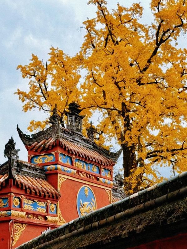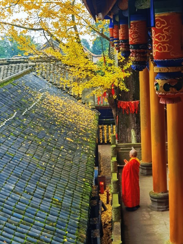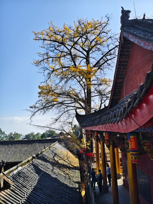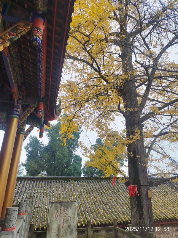 晴天风景很好,但寺里古银杏树已经掉光了。要吃斋饭的可以早点去,晚了就没菜了。