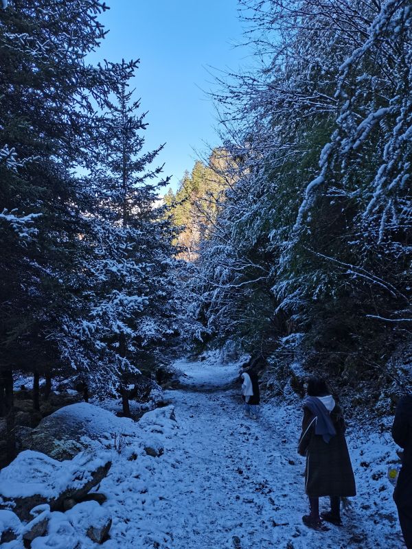 雪天户外一定要配备防滑鞋,冰爪,登山杖,容易踩空或者打滑