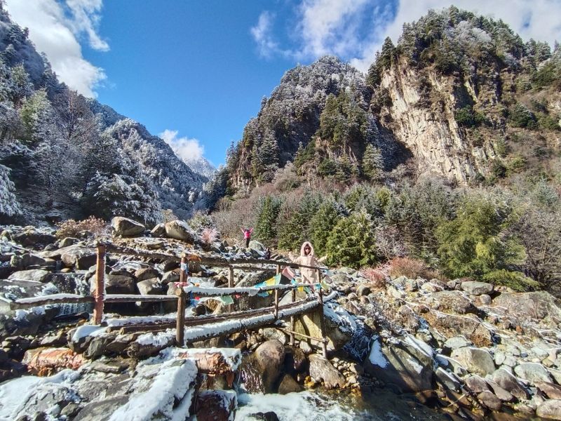 阿清领队认真负责,带领着我们漫步在雪地,欢声笑语中往返6公里,堆雪人、打雪仗、拍美照。寒冷天气中围着柴火吃铁板烧也是很不错的体验!