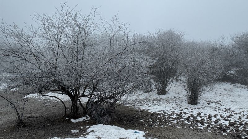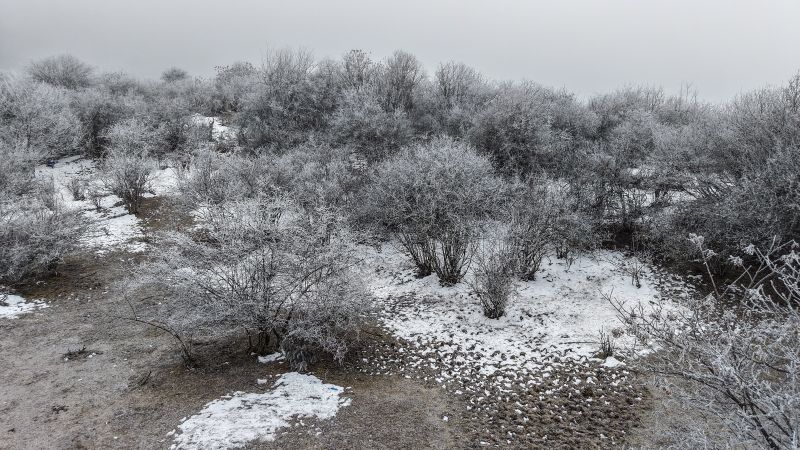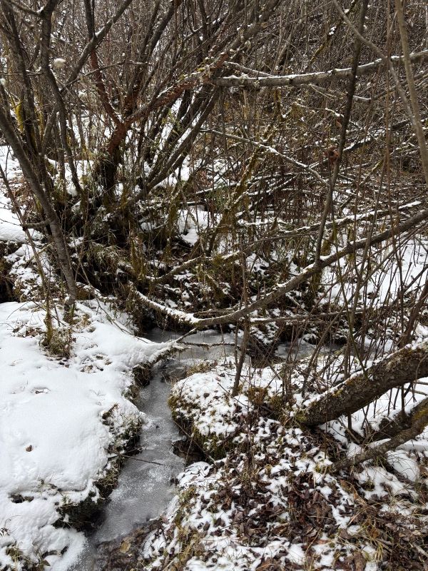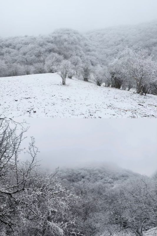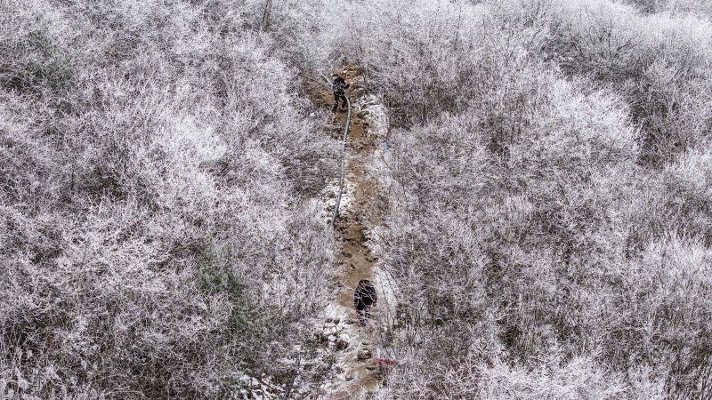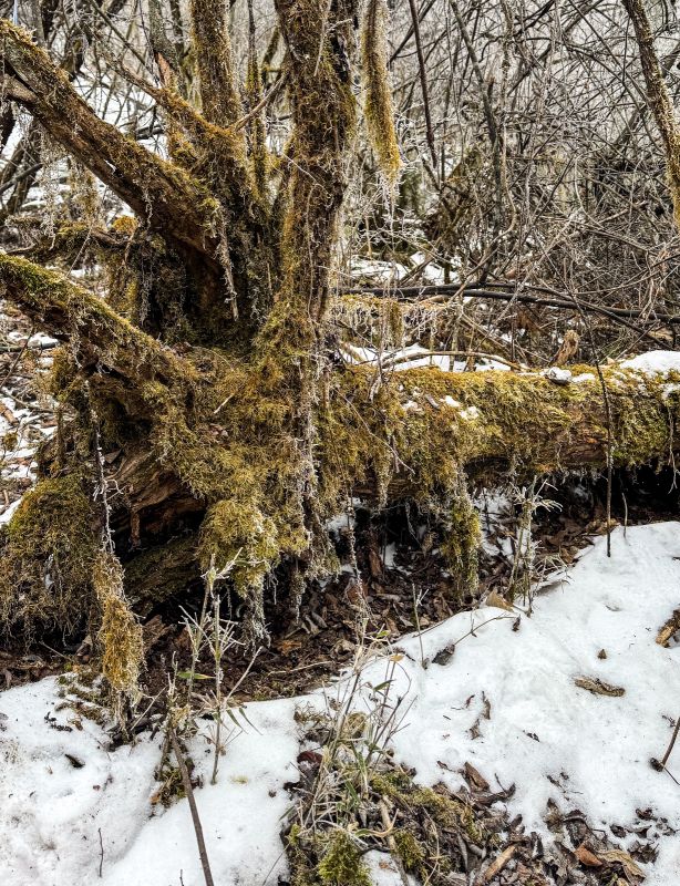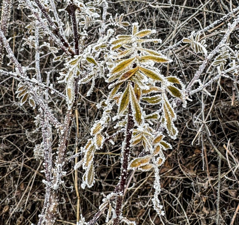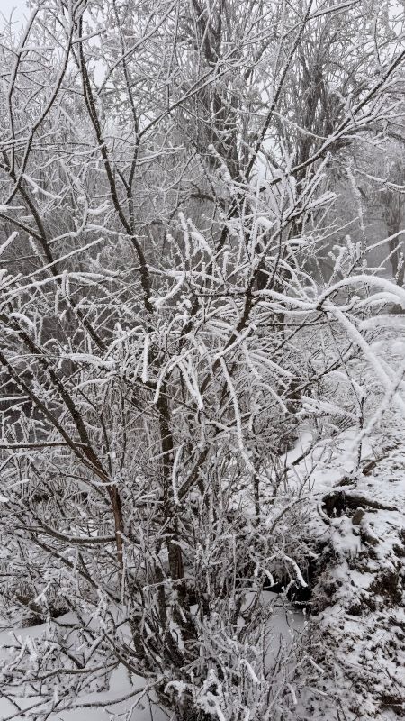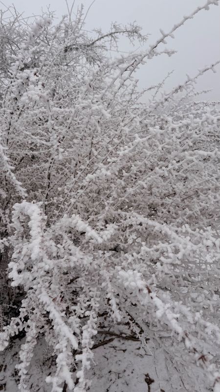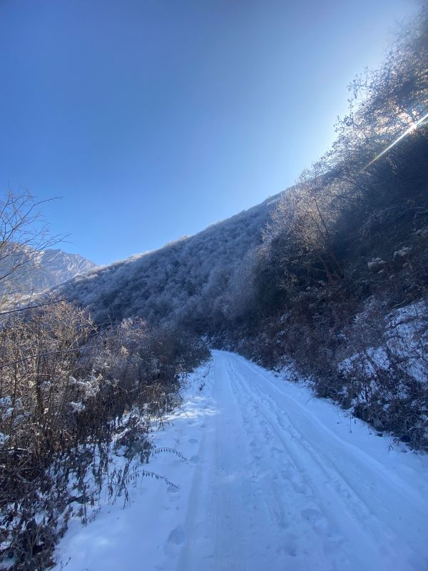 虽然是一路沿着公路一路走 阳面与阴面之间的景色却是截然不同 阴面的的晶莹剔透的雪霜 静谧之中踩在雪里发出雪野的足音,是一支私人的序曲