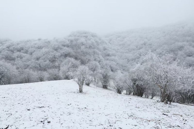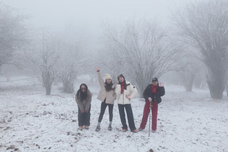 登顶坪游记 漫天飞雪,登顶坪银装素裹,恍若仙境。冰瀑垂悬,晶莹剔透,鬼斧神工。幸得导游沉香小姐姐、榴莲大帅哥一路相伴,引路踏雪,笑语温言,寒日亦觉暖意融融。拾级而上,琼枝玉树,目不暇接;驻足凝望,天地苍茫,心旷神怡。此行虽短,胜景难忘,导游尽责,旅途圆满。归途回望,千山暮雪,余兴未尽,期待再逢。