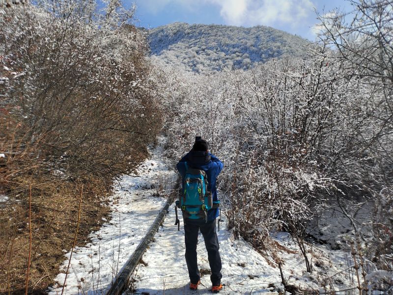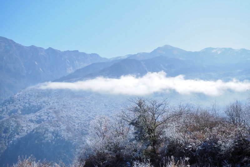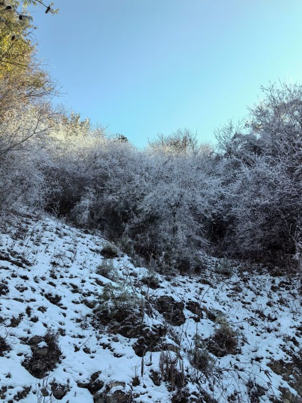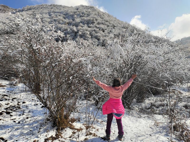 跨年期间下了大雪,之后连续几天大太阳,不过刚好我们赶在雪化之前去的九顶山登顶坪,雪景非常漂亮,领队也很负责,上山打前阵,下山收队,一路帮徒友照相,很棒