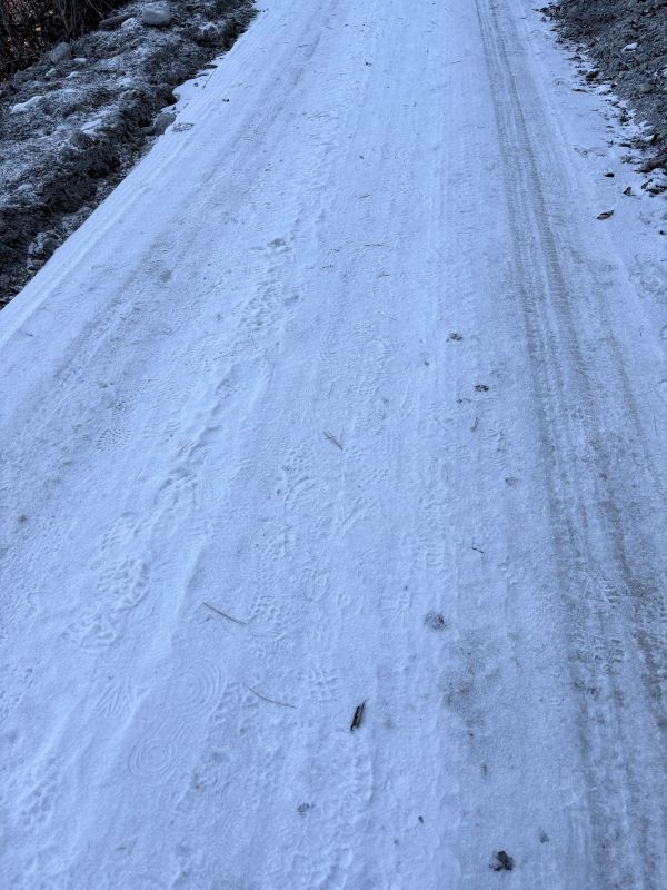 领队超好,一直在帮忙拍照片。徒步全程都是公路,比较轻松,新雪很蓬松~