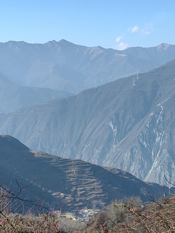 人挺多的,到了山顶平台,雪还是很厚,还看到了阳光下的雪山