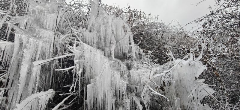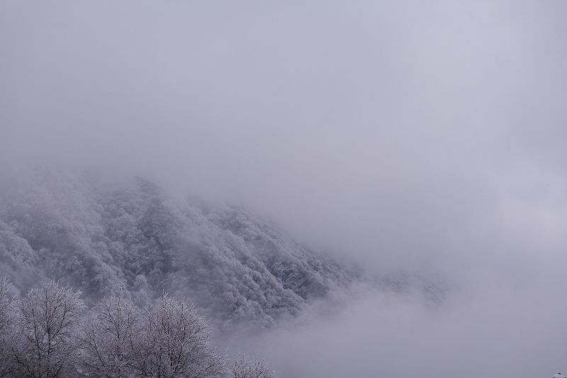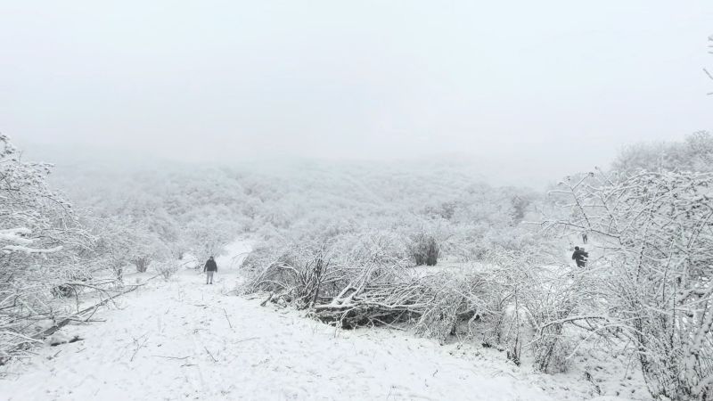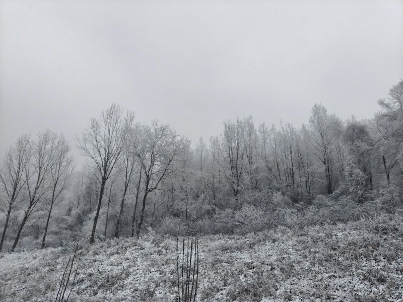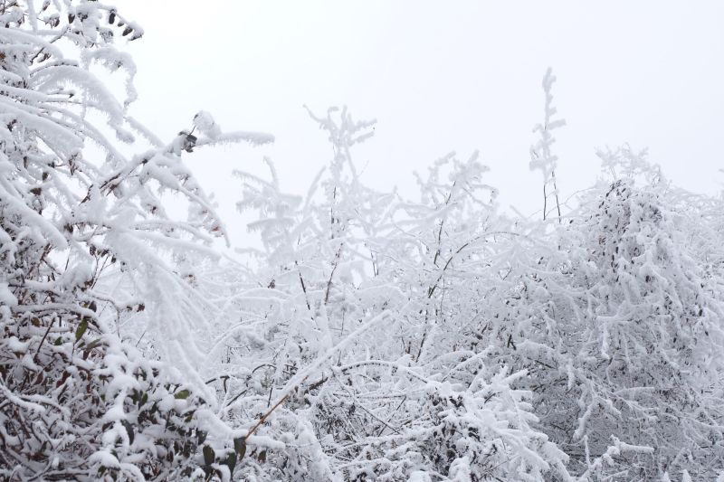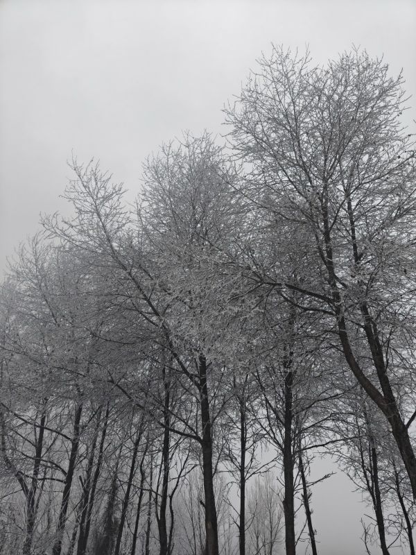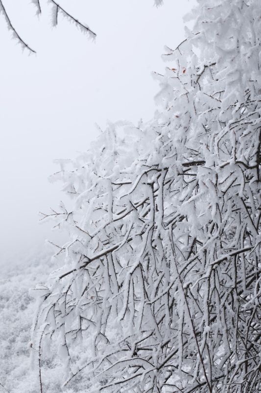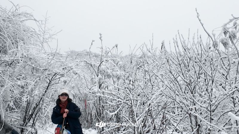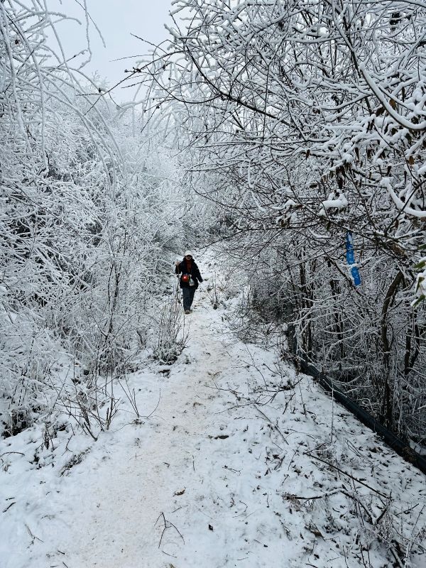 第二次去九顶山,白雪皑皑啊!上到登顶平,瞬间千树万树梨花开。榴莲领队照顾大家很用心。