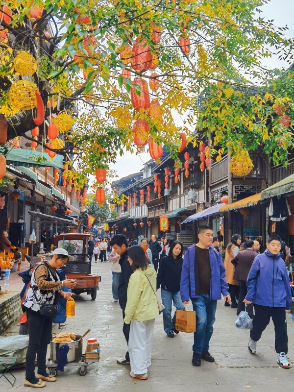 有拐子很便宜,路上都有吃的,还有卖折耳根的,古镇还可以,有烫鹅特产,人比较多