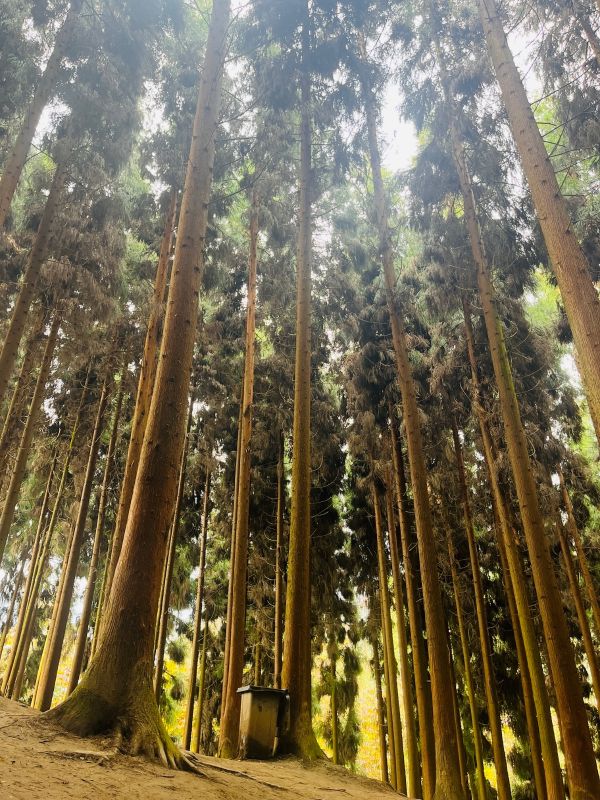 森林不是太大 进森林前有段坡比较陡 森林里有灵芝种植基地 可以瞅瞅 小朋友可以没问题