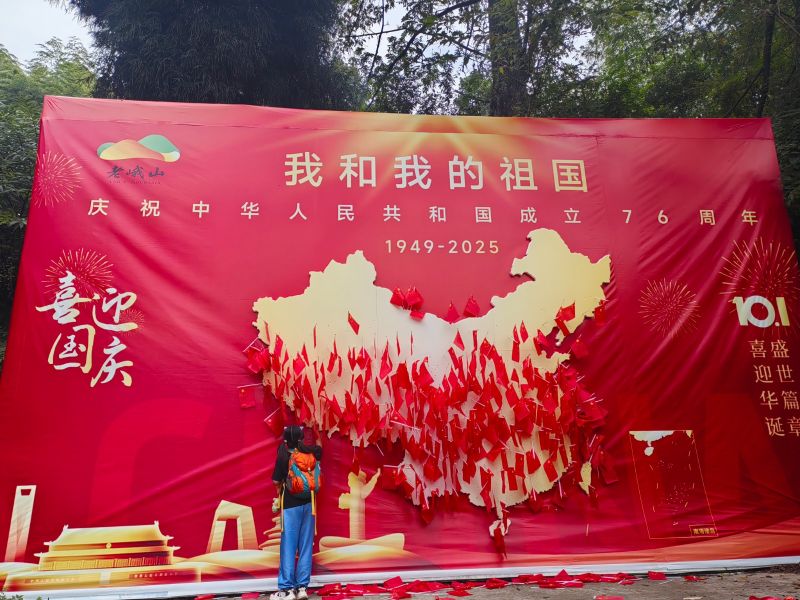浓浓的国庆元素,配合老峨山的青翠 老少皆宜 完成徒步的奖牌,小松鼠很可爱