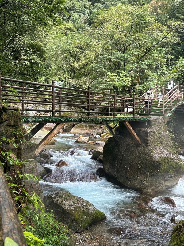 本身要去回龙沟结果人少没成团 被迫选择了这个 倒也不是不好 主要是感觉更适合夏天 先说我比较在意的点 一不需要带路餐 景区门口有豆花饭面条啥的进门之前先来一碗下山在吃完全来得及 一路山上也有狼牙土豆这种补给 二很轻松的一条路小朋友都觉得太简单 我们提前就下山导游带着去了斜源小镇 买点菜回来 怎么说呢入门路线 可以走 景区干净水不错