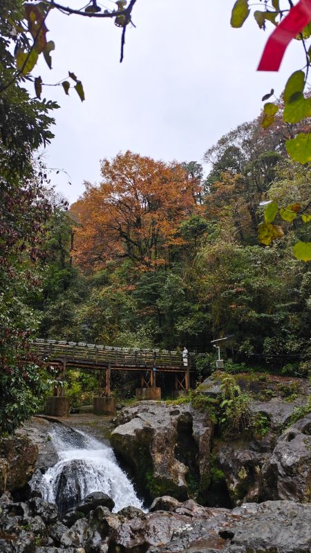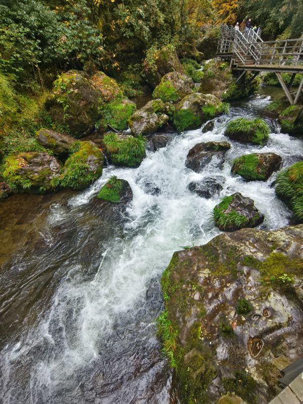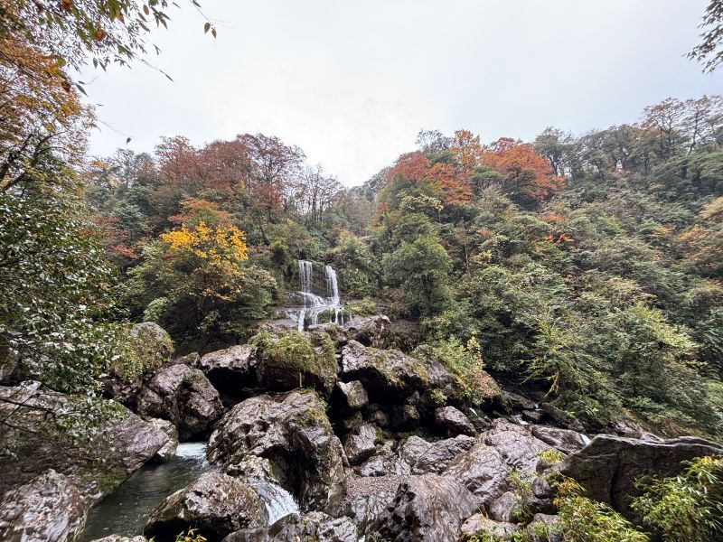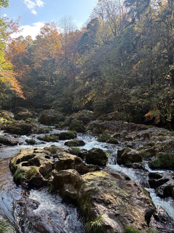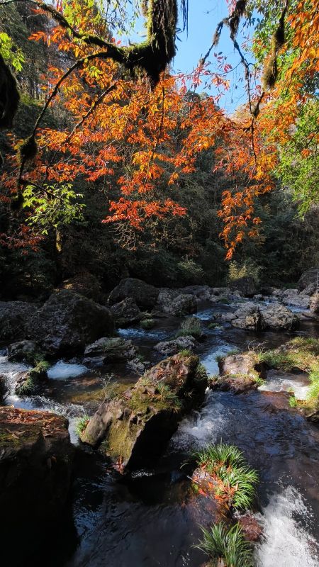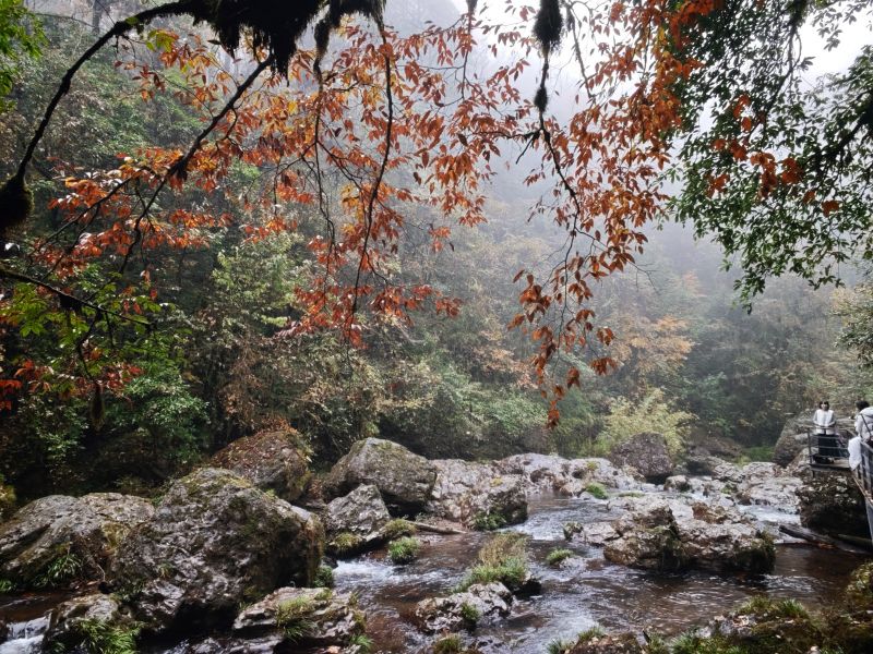 龙苍沟的景色简直美到令人窒息。这里四季如画,春天可以观赏鸽子花等珍稀花卉,夏天是避暑的绝佳胜地,秋天漫山彩林如诗如画,冬天则是银装素裹的冰雪世界 。我去的时候正值秋季,踏入景区,就仿佛走进了一个梦幻的彩色王国,漫山遍野的红叶、黄叶交织在一起,层林尽染,风一吹,树叶沙沙作响,就像一幅流动的油画。