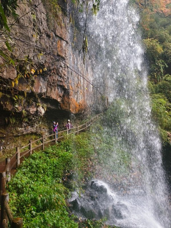 很漂亮!!!果然有山有水是最漂亮的,景色很美,就是景区有一段栈道很窄,需要侧着身子才能通过。领队月亮和吴俞认真负责,调度合理,安排得很好
