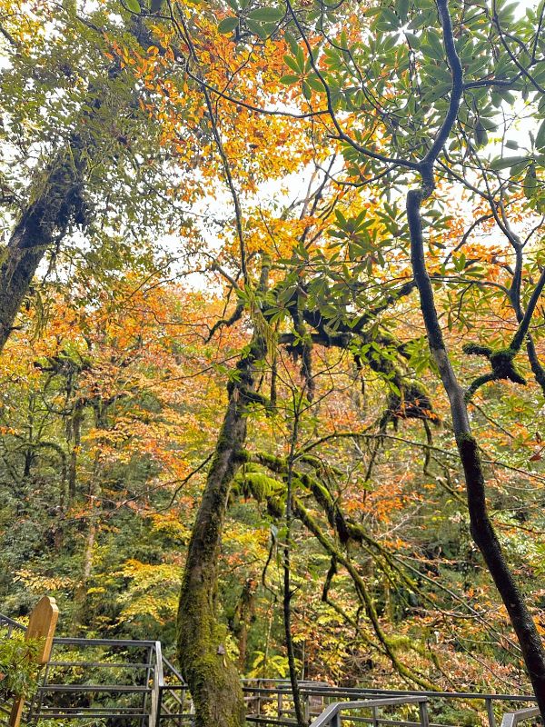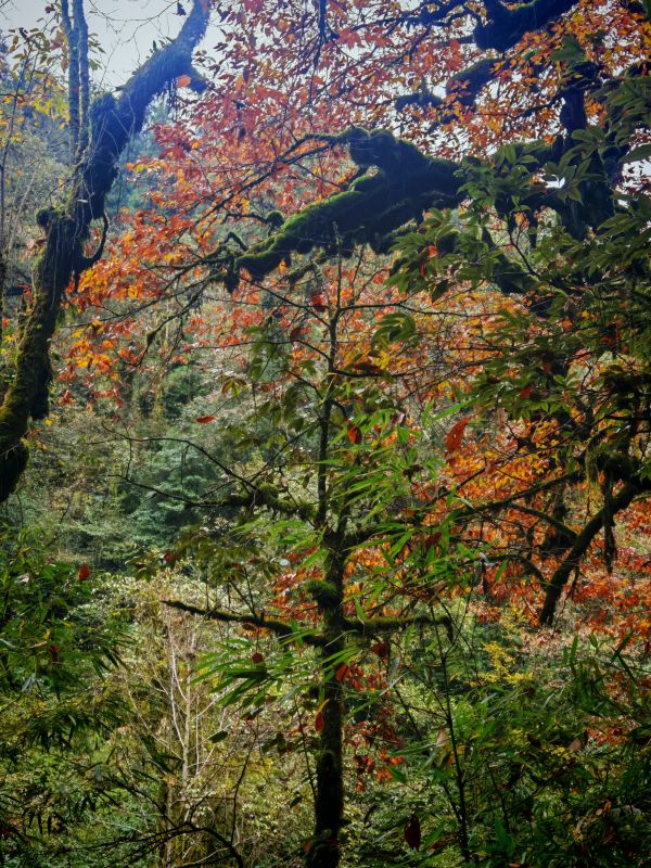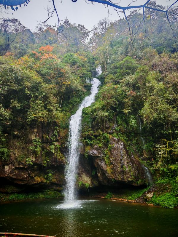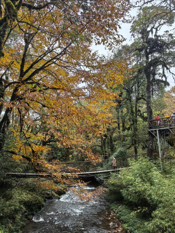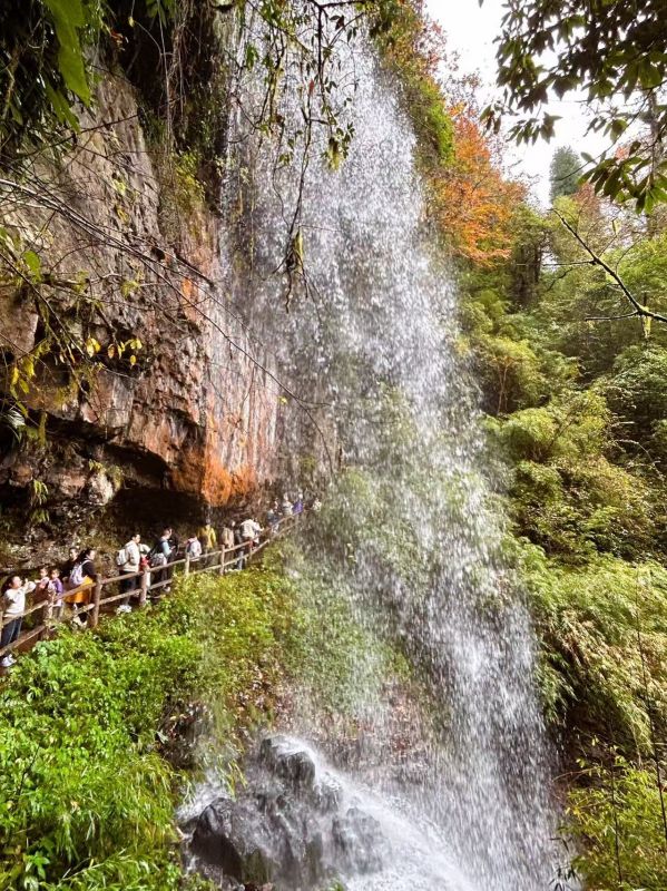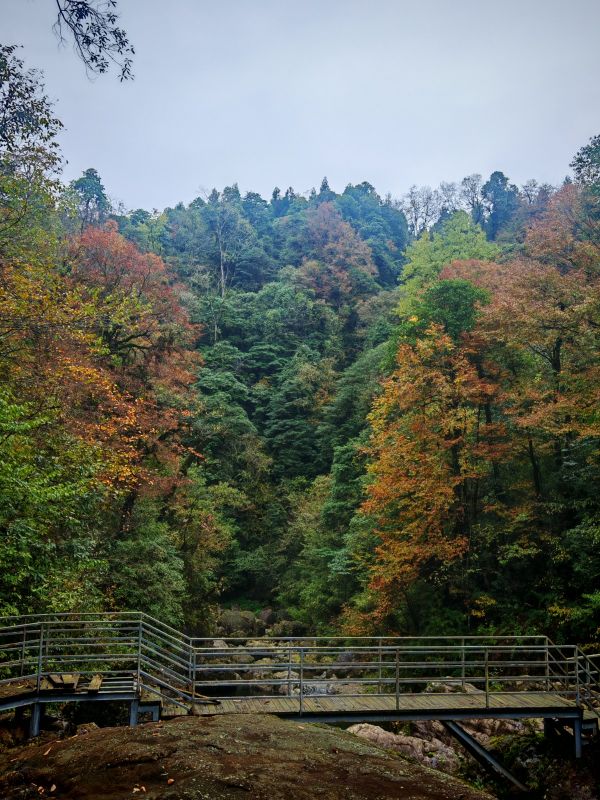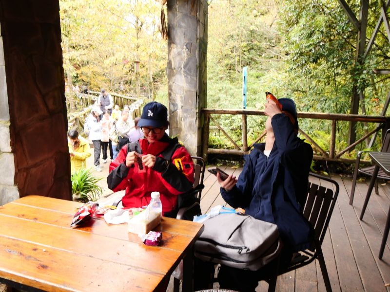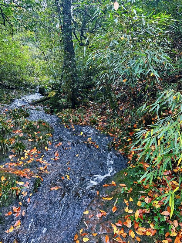 今儿天气不错适合爬山徒步,山色清新,树叶绿红黄相间,流水潺潺,一路上青天领队为大家拍了不少照片留念,服务挺周到。