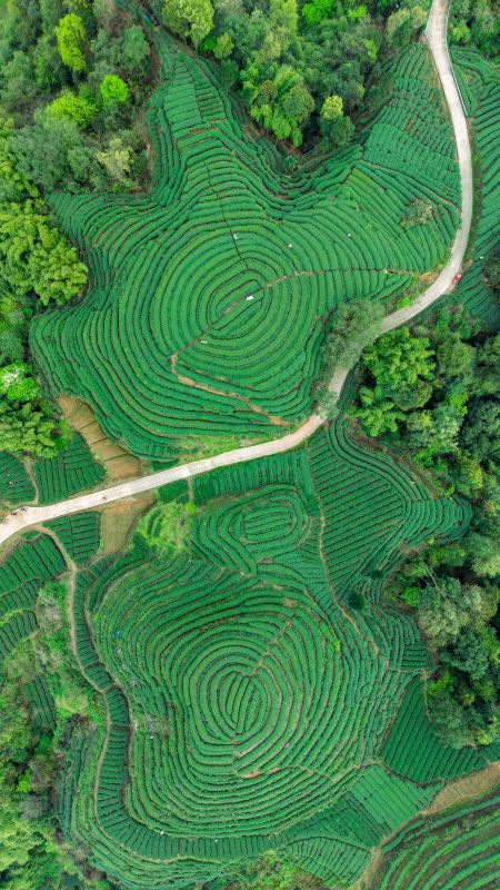 这里被摄影师们誉为大自然的鬼斧神工。特殊的山形地貌让茶园呈现出独特的纹理,俯瞰之下宛如大地的指纹