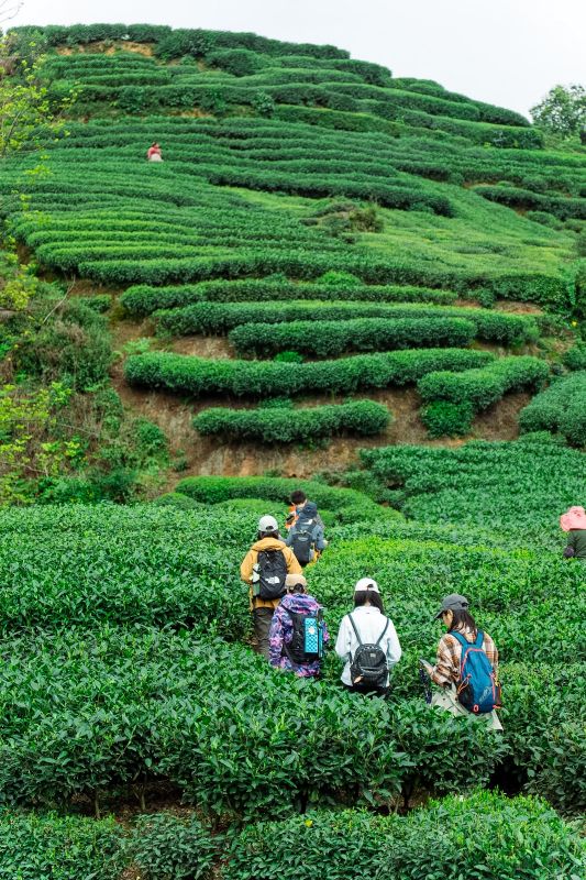 一览无遗的茶园梯田,植被葱茏延绵的总岗山。行走其间,闻绿茶飘香。