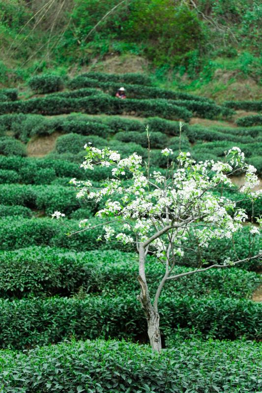 绿茶飘香,茶园梯田,跌宕起伏、错落有致,美丽的自然风光与人造茶园景观合二为一。