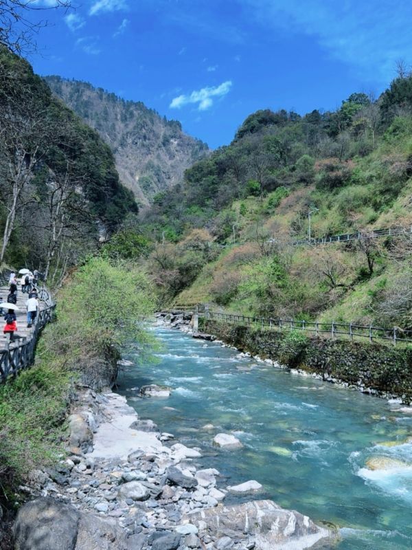 如不是亲眼所见,你难以想象,这里不仅山花烂漫,且山水清秀,是一处洗肺吸氧的好地方。隔着屏幕都能感觉到喇叭河迎面扑来的氧气、翠绿的树子和湛蓝的河水里飞溅出来的冰凉。