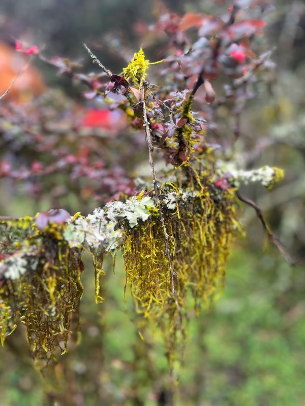 这里植被丰富,秋季时漫山遍野的彩林,尤其是金黄色的黄杉,与山下的绿色形成鲜明对比,视觉效果强烈,仿佛置身于油画世界。