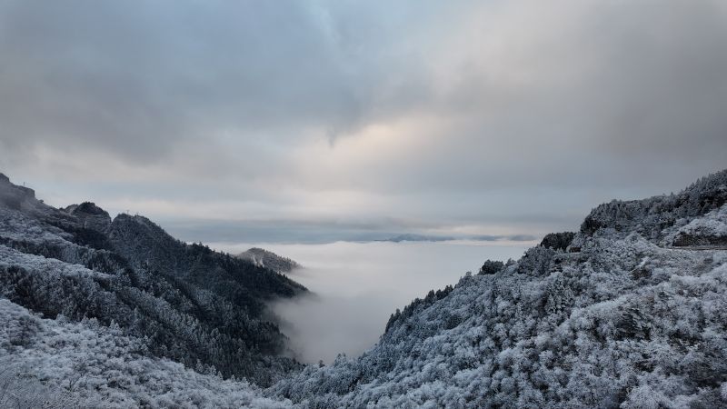 在冬季,雪花如细碎的钻石般飘落,将世界装扮成一片洁白无瑕。雾凇冰挂,银装素裹,雪山的轮廓在这片纯净的背景中愈发清晰、分明。而秋冬季节,高山上的天气往往更为稳定,云海日出的美景也更易呈现。只需一点点好运气,你便能拥抱这壮丽的世界,感受大自然的无限魅力。