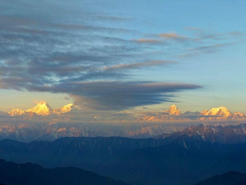 “蜀山之王”贡嘎雪山矗立于牛背山的正西最高点,虽然海拔不算太高,但牛背山的山顶可观云海、日出、夕阳、佛光、星轨等自然美景。