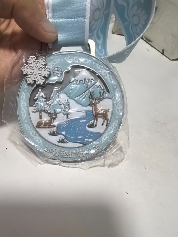 很轻松去,两条路线都走了,还获得了奖牌,雾凇和河边溪流都很不错,水很清很蓝