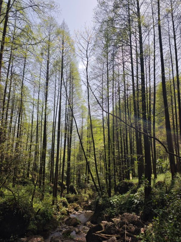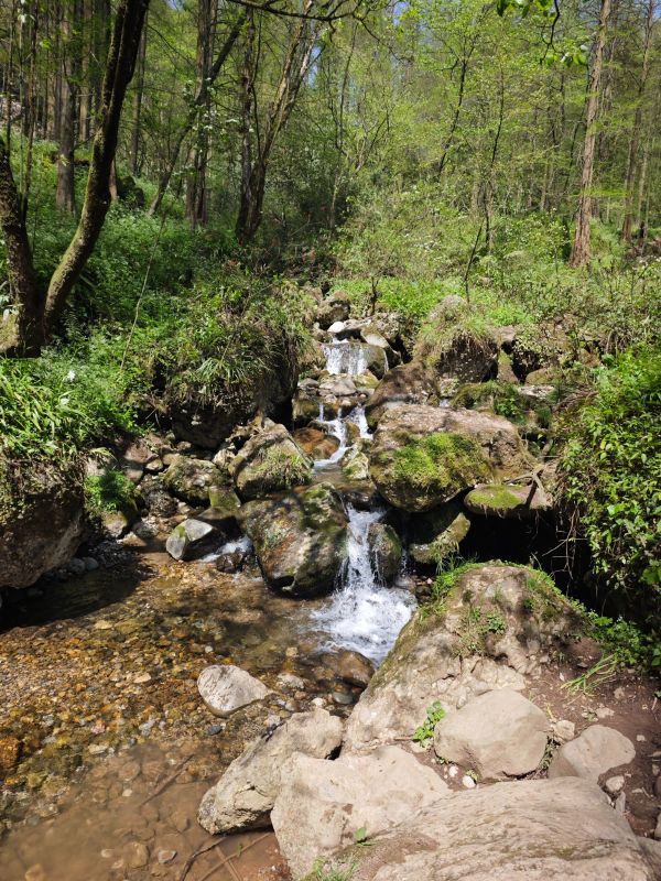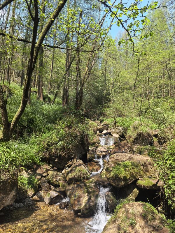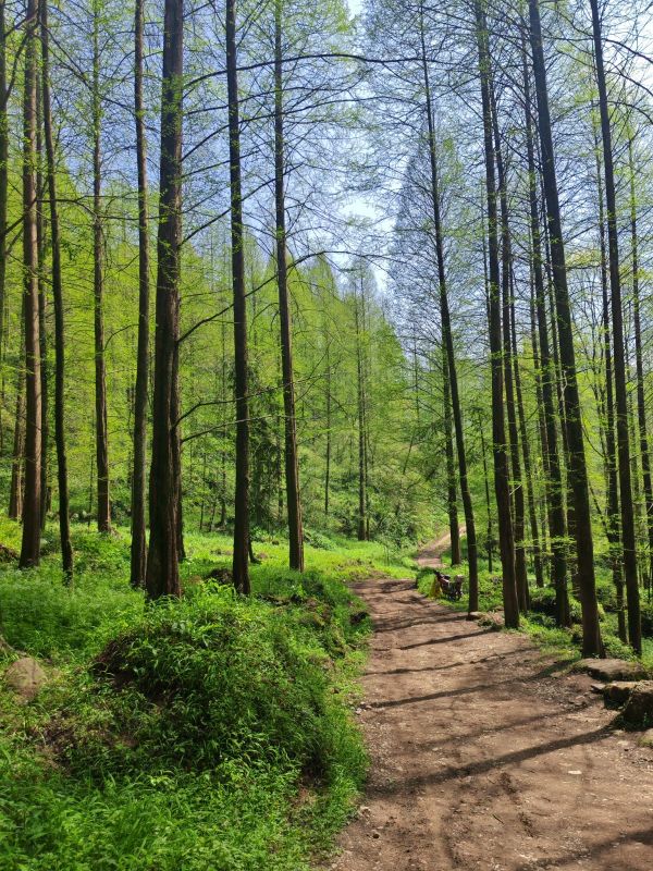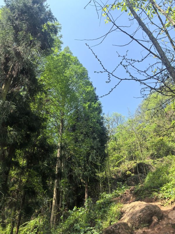 十公里的上元古道,每一段路都给人惊喜,有皇家道观长到望不到头的阶梯,有宽敞的机耕道,抬头便可见漫画般的云彩,有贴着山体的羊肠小道,需要打起十二分精神,以免踩空,还有泥泞的长下坡,一个不注意就有摔屁墩儿的风险,满眼都是春绿的颜色,一不小心,就看进心里,让人满心欢喜。