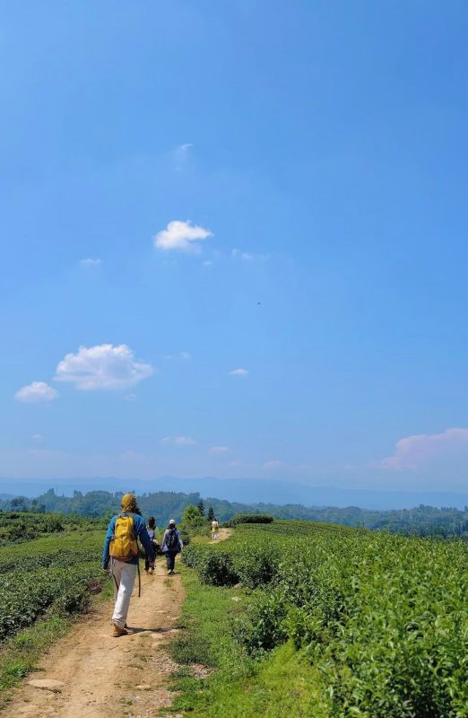 天气晴朗,绿色茶树梯田很治愈,各种小道也很锻炼人