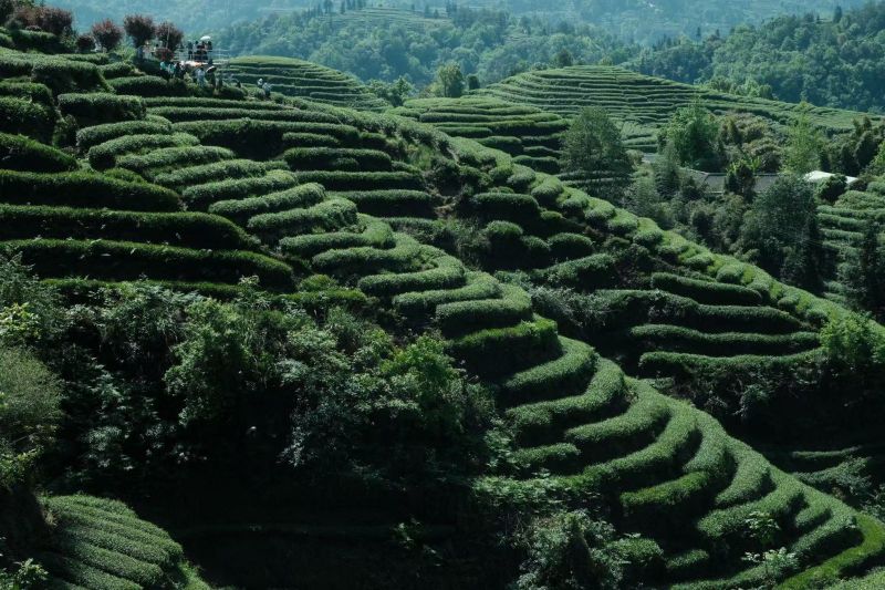 当地的茶农充分利用荒置的山地,将浅丘低山开辟为茶园,沿着梯地种植茶树,成为茶山梯地景观。