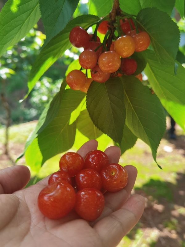 坡地上、平谷里,一串串挂在枝头果香四溢,自己在天然氧吧中亲手采摘的樱桃,吃进嘴里,一股股甜甜的、带着清香的味道,让人久久不能忘怀。