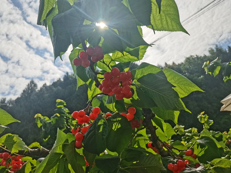 在这里,可以四月吃樱桃,五月摘枇杷和桃子。当下红红的的樱桃犹如漫天繁星红色小精灵,密密麻麻缀满了绿色幔布般的山丘。