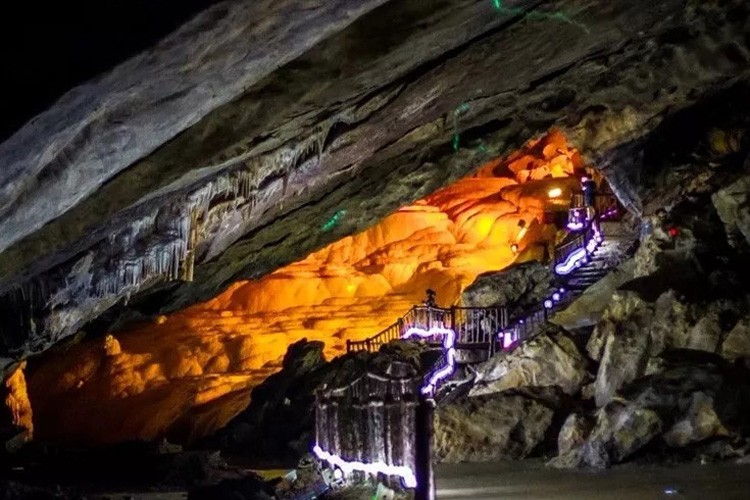 洞内四季恒温,并且有多层洞合水帘洞,200以下的地方有色彩斑斓的原始砾岩河床和长流不息的暗河。