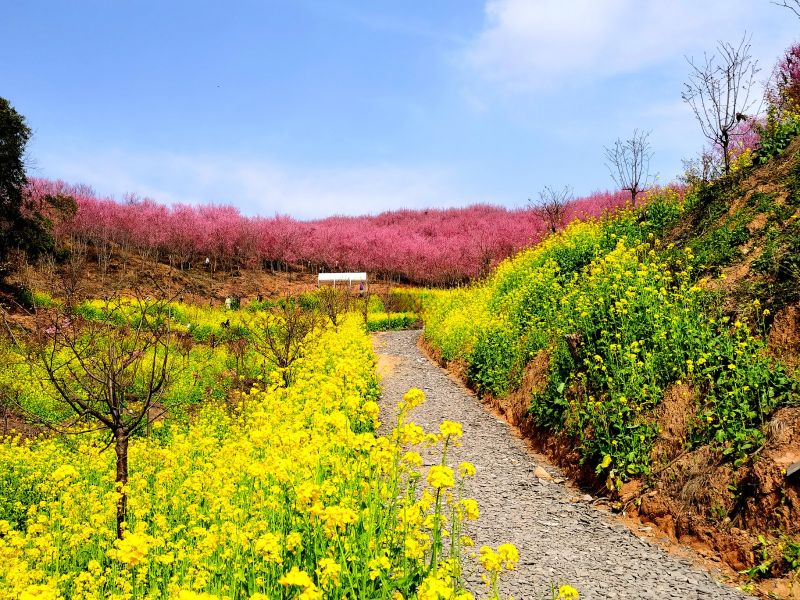 早上指定时间地点集合出发,领队讲解行程安排及注意事项,在一片欢声笑语中轻松抵达我们今天的目的地成都“小婺源”-五星村油菜花田,我们一起走在乡间的小路上,摄影美拍;适时午餐,就在油菜花下悠闲的吃着,享受这一份美好的时光,吃完饭稍作休息,放放风筝、前往醉美油菜花海拍照,油菜花清香扑鼻。也可发呆品茶;下午适时,我们去旁边的十里梅林,这个时间梅林的红梅争相绽放,下午按照约定时间,集合返回成都,大家含泪吻别!期待下一次的相约。