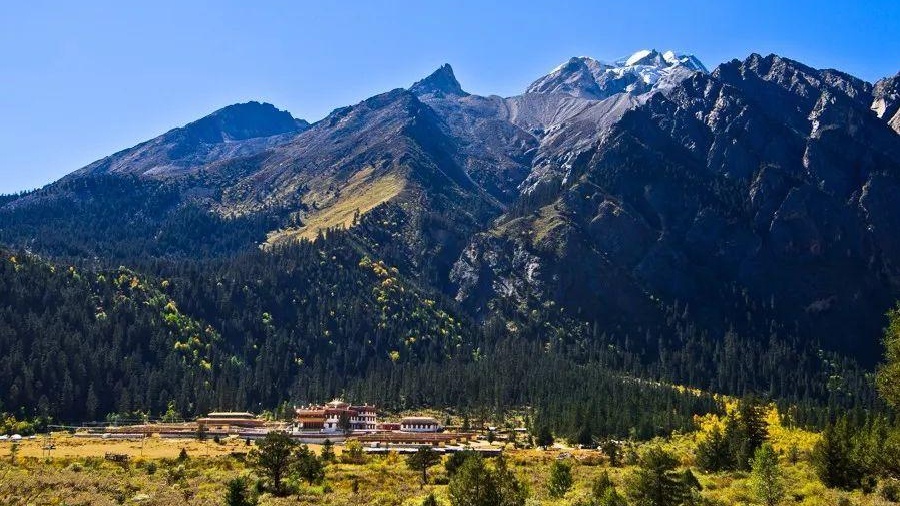 冷古寺就在格聂山脚下,意为“圣地之门”,位于格聂峰和肖扎神山之间的山谷中,群山环抱,是藏传佛教第一世噶玛巴都松钦巴创建,黄教与白教共存,主供佛宗喀巴。