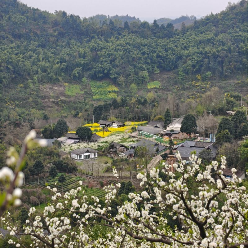 万亩李花竞相开放,开成一条十里花海长廊,漫山遍野,美不胜收,成为了川西最大的李花观赏地!