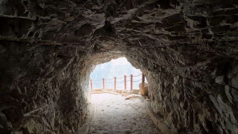 骡马道随着岩壁的走势而建,整体呈“Z字形”,就像我们的人生一样,总是需要在前进的道路上绕来绕去,才能达到终端。