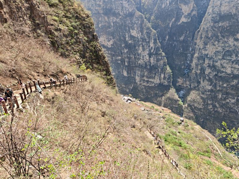 越往上走,道路越来越艰险,很多徒友在此会陷入“继续前行或止步退回”的两难境地,毕竟一边万丈深渊一边陡峭的骡马道都是对人体生理和心理的极大考验。