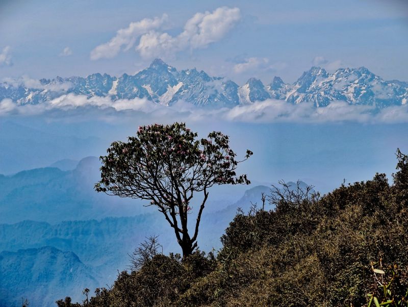 这里是翻越大相岭这个著名的气候分水岭的必经之路,泥巴山垭口是从东北方向远眺贡嘎群峰的绝佳观景台。