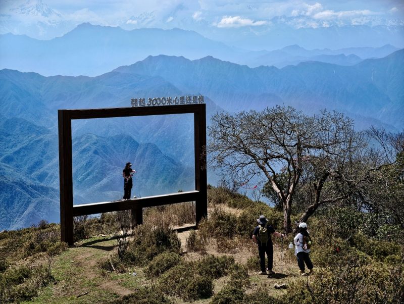 《泥巴山2999米:在风里,与“空山”对坐》 风在耳畔低语,海拔数字在脚下悄然攀爬——2999米,不是终点,是山野递给我的一封情书。 站在这里,才真正懂得“空山”二字的重量。 不是空无一物,而是万物皆可容—— 容得下贡嘎群峰在云隙间忽明忽暗的冷光, 容得下杜鹃花在风中轻颤的粉白裙摆, 容得下红石上苔藓的岁月斑驳, 也容得下山峦层层叠叠、如水墨晕染的青黛。 有人张开双臂,把雪山当背景板, 有人背着登山杖,在山脊上刻下剪影, 有人坐在“空”字牌下,任风把思绪吹散又聚拢。 而我,只是静静站着, 看云雾在山尖聚了又散, 看阳光把雪峰镀成金边, 看自己的影子被拉得很长很长, 长到仿佛能触到山巅的云, 长到足以丈量这一程—— 不是用脚步,而是用心跳。 风里有贡嘎的雪气, 有杜鹃的甜香, 有我们一路踏出的回响。 原来徒步的意义, 从不是抵达某个坐标, 而是在途中, 与山对视,与风共舞, 与那个被城市喧嚣掩埋的自己, 重新相逢。 泥巴山的风, 吹散了尘世的纷扰, 却把热爱, 深深烙进每一寸脚印里。 ——山不语,风作答。 你我皆是过客, 却因这趟行走, 成了山野的一部分。