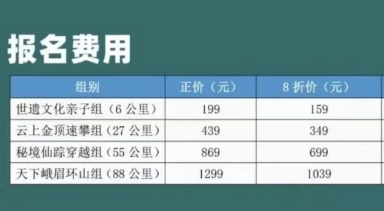 • 峨眉山越野赛世遗文化6km组报名费(199/人,含参赛服、计时器、完赛奖牌、号码布)