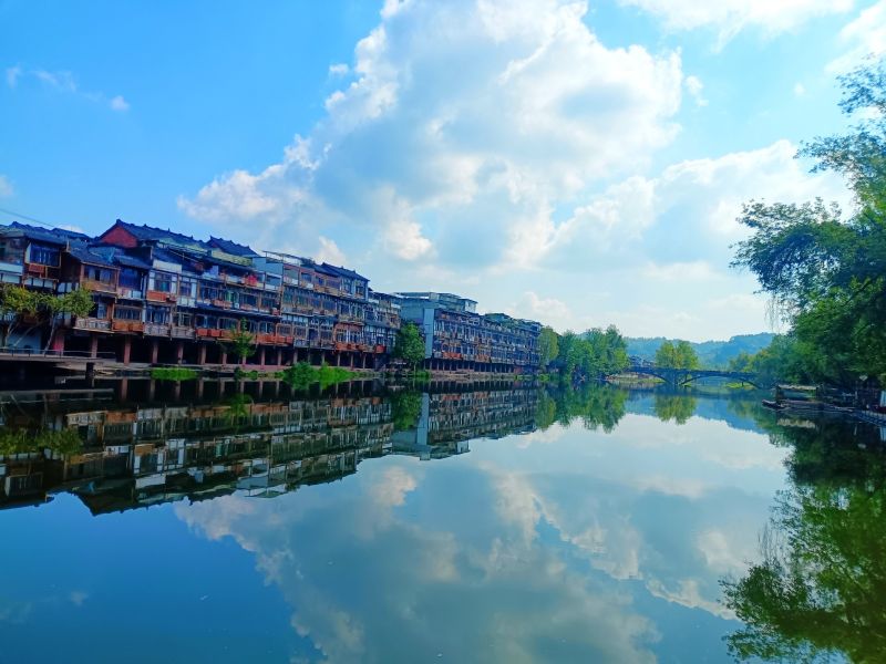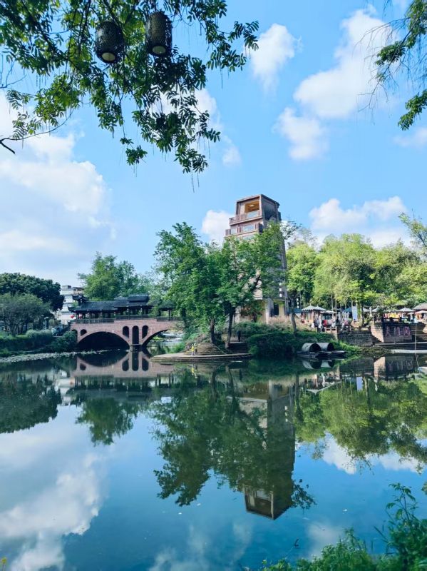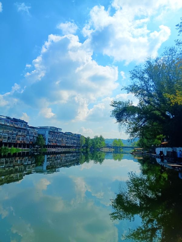 游走在河边柳岸,亲切感油然而生,十分轻松,看着沿岸的倒影,如果不是风把水面风得泛起了一层清波,你肯定还以为自己身在梦境中。