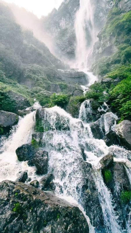 2、【兰溪绝壁瀑布观赏(半山画廊)】(往返8公里):景区游客中心—金花桥索道上行—开始徒步—古佛坪天梯步道—半山画廊—叠溪飞瀑长廊—兰溪绝壁栈道上行入口(原路返回)—古佛坪天梯步道—金花索道下行索道—游客中心(需第1段索道往返88,需注意,该游玩方式只能观赏绝壁栈道,受时间限制不能进入到绝壁栈道)