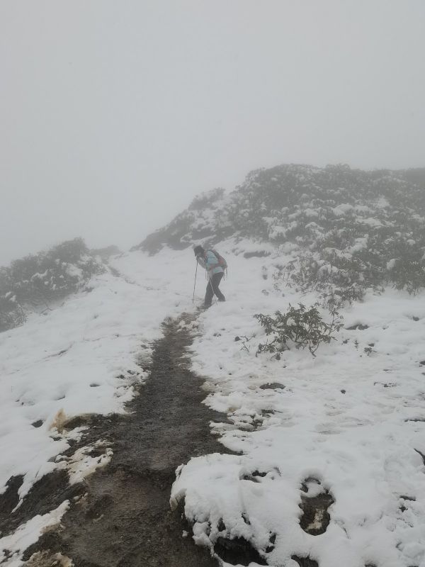 领队石榴人很温柔,充满了能量,今天天气不好能见度很低,但是玩到了雪,非常开心